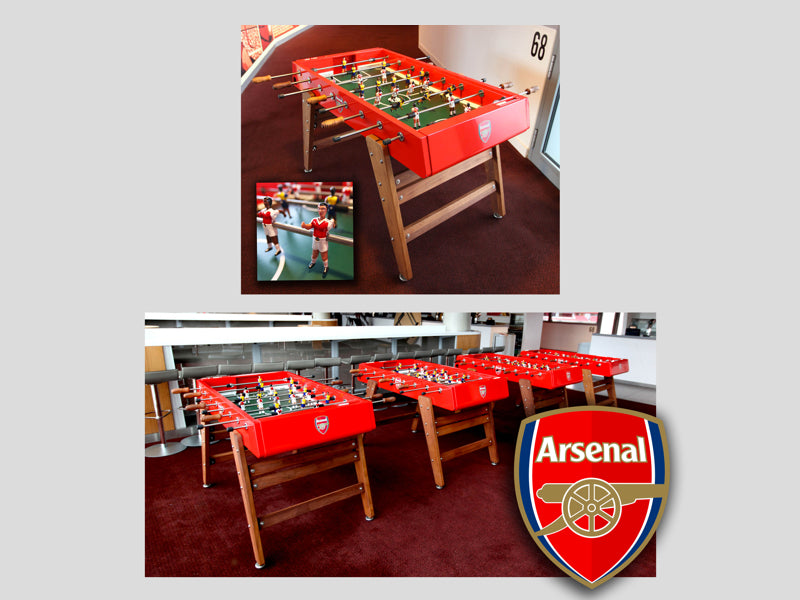 We started with the incredibly robust and yet stylish RS#3 tables from RS Barcelona, before custom painting them, adding the unique Arsenal branding, and then hand painting the team strip on the players themselves.