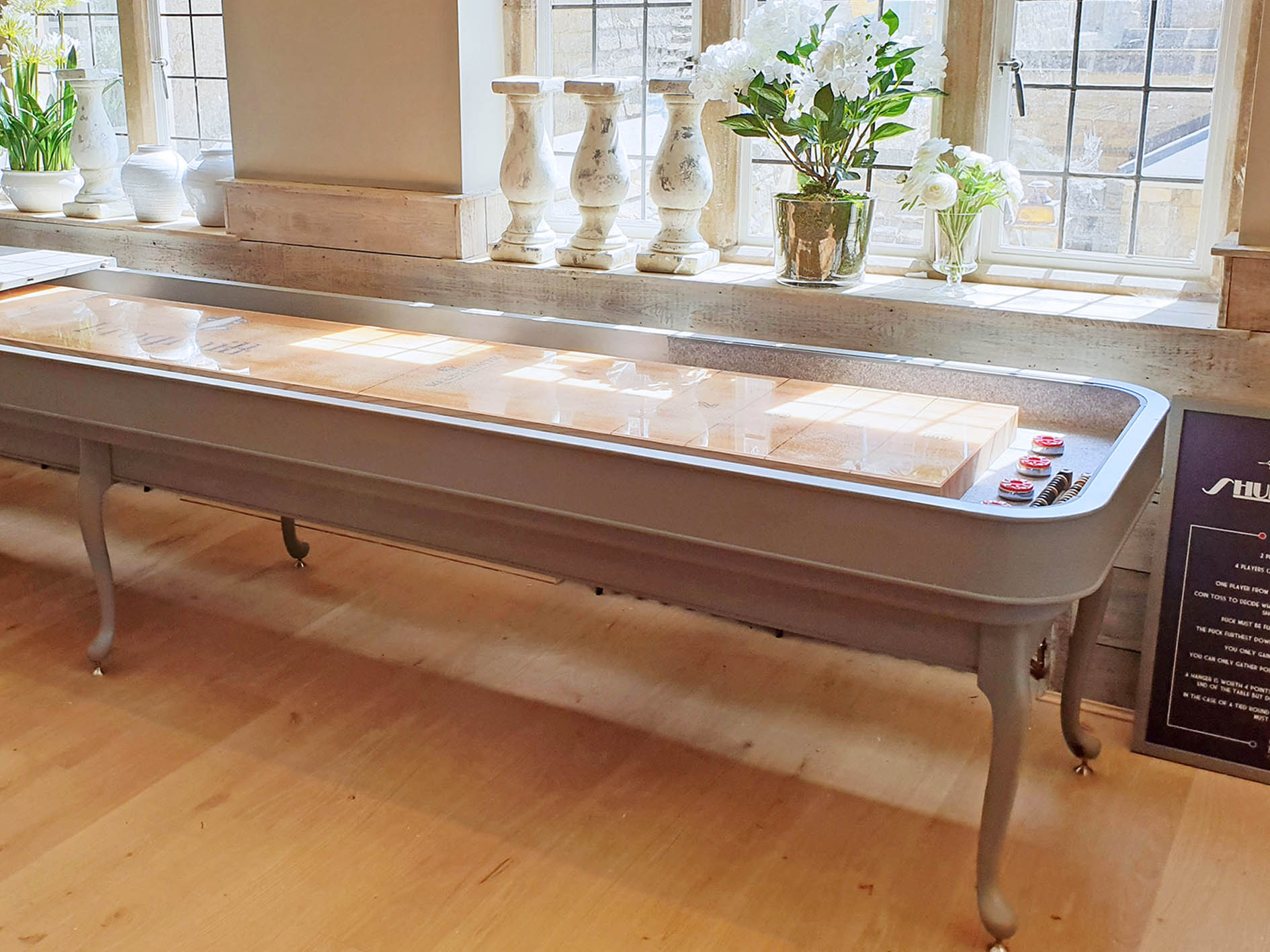 Proof that shuffleboards can work well in any surroundings comes in the form of this beautiful, branded table we created for a Cotswold inn. Shop our Shuffleboard Tables.