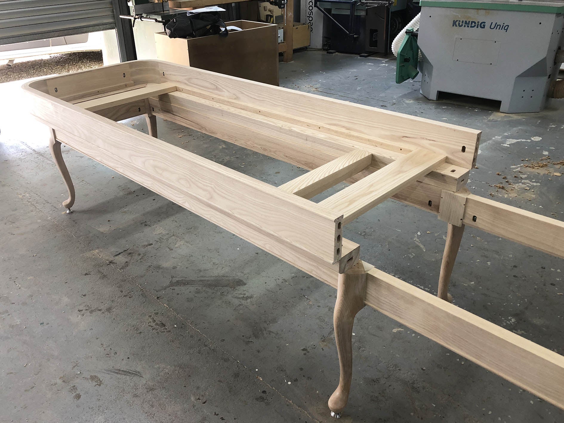 Those seeking a more traditional shuffleboard will usually opt for one of the wooden framed models, which like their steel framed counterparts can be made in any size. Every shuffleboard we make is effectively a one off, hand crafted according to the client's specific needs. This particular client requested these elegant Queen Anne legs in order that the piece would match other period furniture in the room.