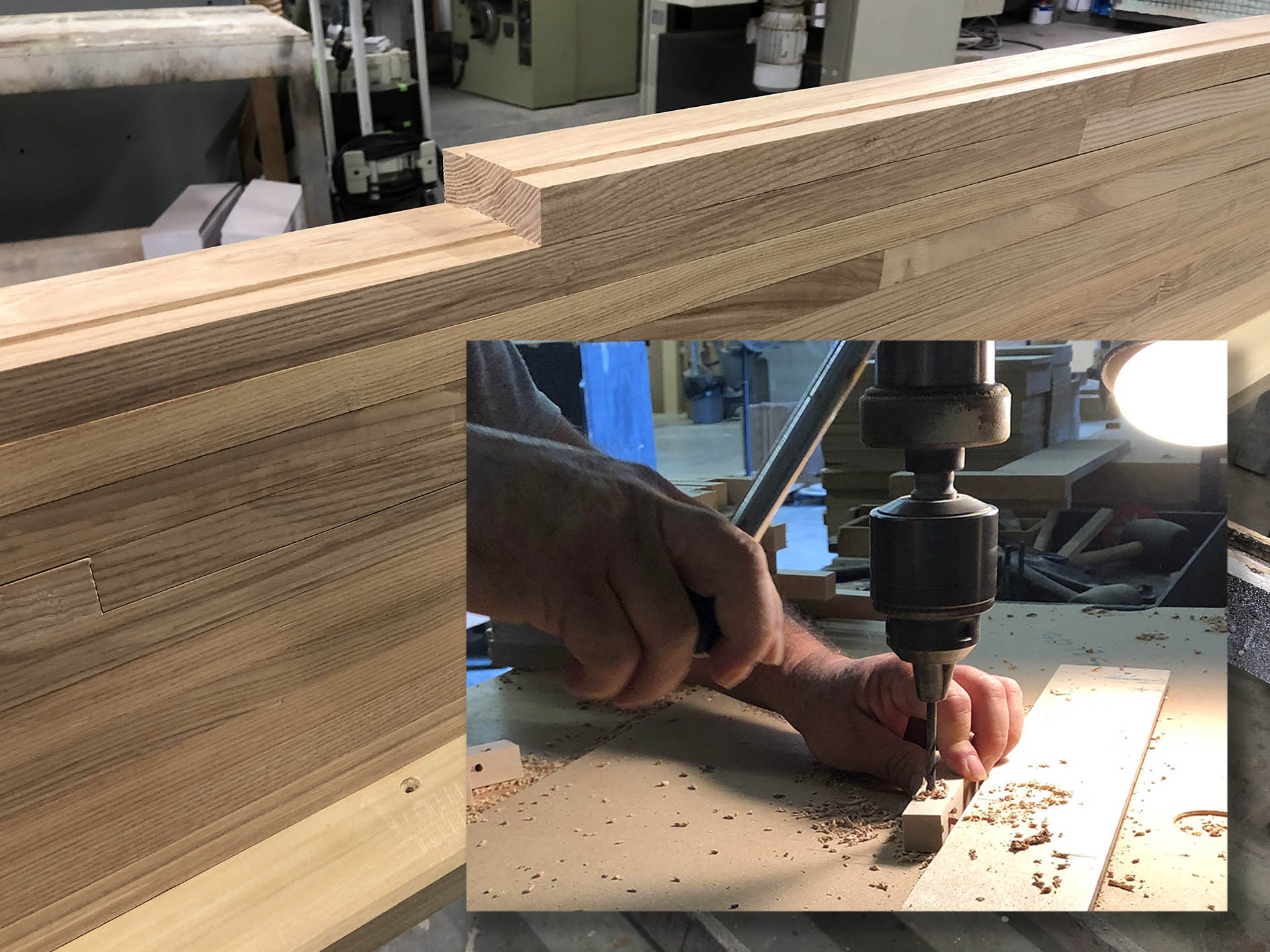 Our playfields are constructed from multiple layers of ash, especially engineered to prevent warping over time. These strips are powerfully bonded and compressed in a specialised press, resulting in a playfield which looks like a single piece of hewn timber.