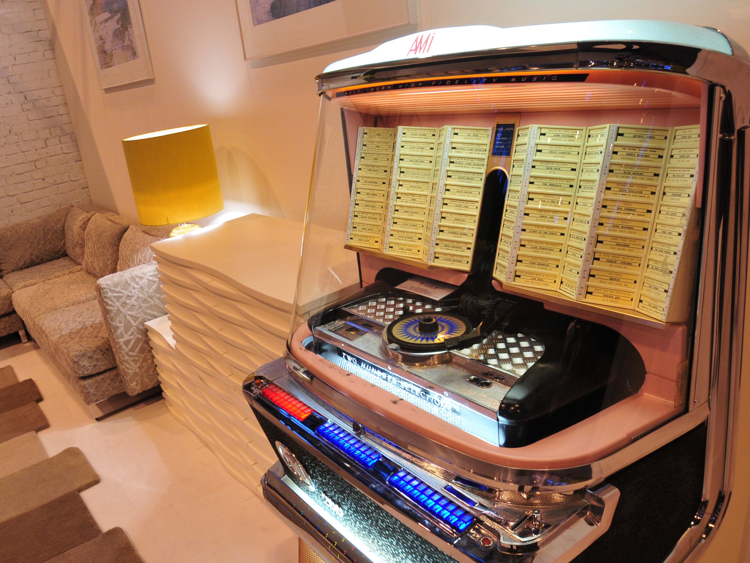 The Automatic Musical Instrument Company is well known for its fantastic range of jukeboxes, and the AMI H 200 is no exception. The automotive design that was increasingly popular for jukeboxes of the era. She's beautiful.