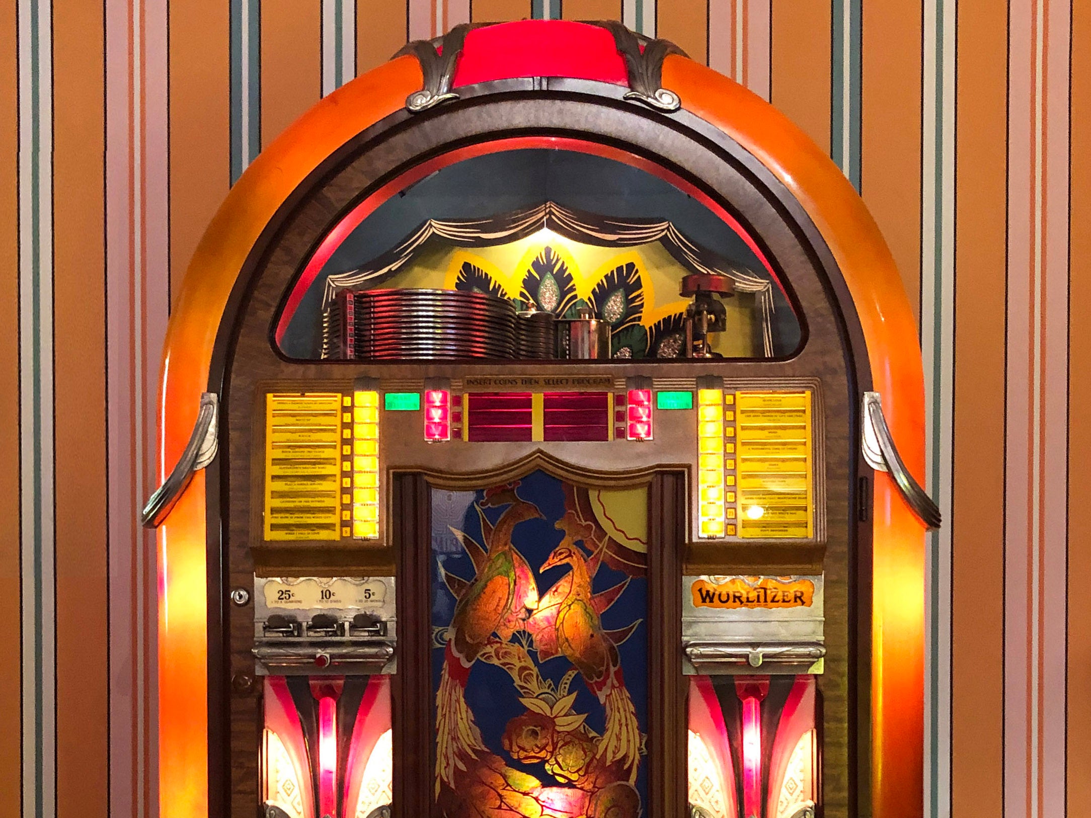 Nicknamed ‘The Bullet’ and following hot on the heels of the iconic 1015 came the Wurlitzer 1100, which is often said to be one of the prettiest jukeboxes ever made. Its nickname derives from the overall shape, which rises to a subtle point in the centre and resembles a bullet stood on its base.