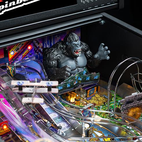 A sculpted King Kong figure responds to player shots, including a dramatic multiball sequence triggered by the NYC train car.